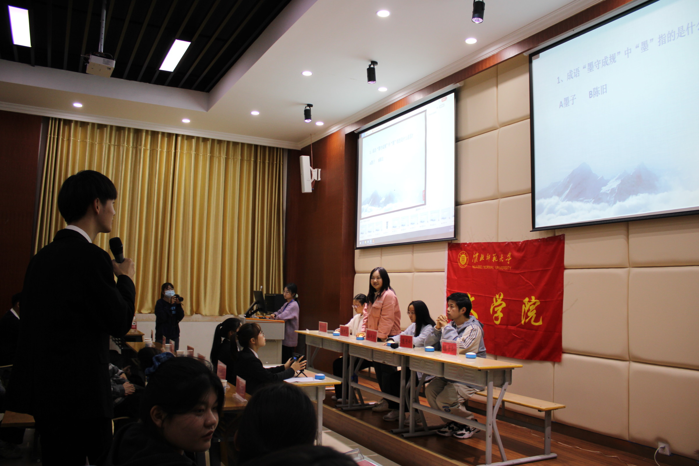 两组选手之间的比拼十分精彩,抢答环节是一场脑力与手速的拼杀,比赛中选手们信心十足,争先答题,奋力拼搏的样子带动了整场嘉宾与观众的情绪,鼓掌声此起彼伏,场面十分火热。而在答题环节中,参赛者将注意力集中于题目本身,冷静应对,展现出他们丰富的知识积累,更有同学在观众席上小声答题,可见大家对于这次比赛的强烈积极性。此外,在A组与B组交接之间的休息环节,2020级戏剧影视文学专业的张洁琪同学还带来了一场动人的舞蹈表演,活跃现场气氛。