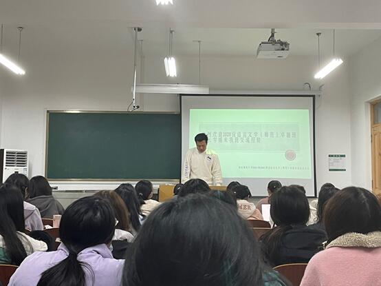 为进一步落实“我为群众办实事”实践活动要求,激发2021级新生的学习热情,营造浓厚的学习氛围,有效指引2021级新生找准学习目标,明确努力方向,在辅导员谷凤艳老师精心安排下,汉语言文学卓越师范班于11月11日晚在特教楼C402举办学习经验交流会。本次学习经验交流会邀请了2020级汉语言文学卓越师范班五位获得国家励志奖学金、公司优秀员工奖学金及在学科专业竞赛中获得省级奖项的同学为2021级汉语言文学卓越师范班传授学习经验,分享心得体会。