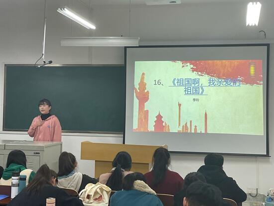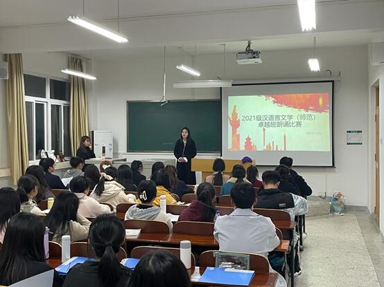 颂百年建党伟业,守初心砥砺前行。为传承红色基因,缅怀革命先辈的丰功伟绩,扎实推进党史学习教育,加强青年员工思想道德建设工作,2021级汉语言文学(师范)卓越班于11月18日晚在特教C402举办“传承中华经典,庆祝建党百年”朗诵活动。