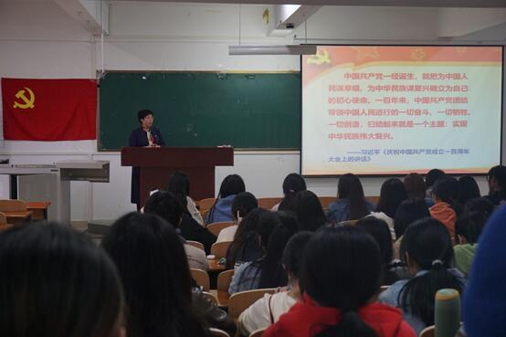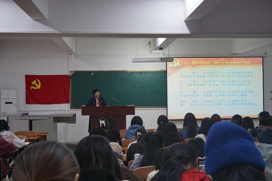 随后,谷凤艳从加强党性修养,不断提高自身素质;牢记自我角色,强化党员意识;认清重大问题,坚定理想信念;树立正确“三观”,坚持为民宗旨;联系岗位职责,发挥模范作用;严守行为规范,遵守党纪国法;发扬优良作风,永葆政治本色等七个方面就如何做一名合格共产党员进行了深入阐述。最后,谷凤艳提出,习近平总书记在“七一”讲话中强调:“未来属于青年,希望寄予青年。一百年前,一群新青年高举马克思主义思想火炬,在风雨如晦的中国苦苦探寻民族复兴的前途。一百年来,在中国共产党的旗帜下,一代代中国青年把青春奋斗融入党和人民事业,成为实现中华民族伟大复兴的先锋力量。新时代的中国青年要以实现中华民族伟大复兴为己任,增强做中国人的志气、骨气、底气,不负时代,不负韶华,不负党和人民的殷切期望!”希望同学们谨记习近平总书记的殷殷寄语,激励自己奋勇前行,争取早日加入党组织,做一名有铁一般信仰、铁一般纪律、铁一般担当的共产党员,为党旗增光添彩。