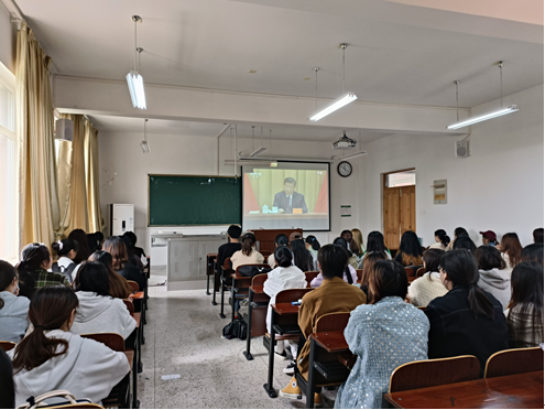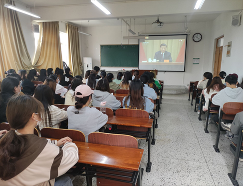 在观看过程中,同学们认真聆听习近平总书记的重要讲话,共同追忆共青团百年风雨兼程。习近平总书记在讲话开篇指出:“青春孕育无限希望,青年创造美好明天。一个民族只有寄望青春、永葆青春,才能兴旺发达。”时代各有不同,青春一脉相承。党的十八大以来,习近平总书记多次同青年学子谈理想信念、谈人生价值、谈奋斗成长,引领青年学子走好人生之路。在观看直播过程中,同学们切身感受着一句句催人奋进的亲切话语,更进一步激发了深深的自豪感,更加坚定了前行的方向。