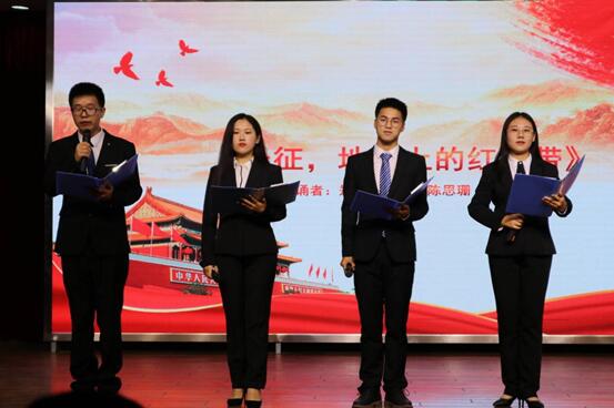 朗诵会以一首《何以中国,何以华夏》拉开帷幕,充分展现了中华民族悠久的历史和灿烂的文化,每一字、每一句都饱含着强烈的民族自豪感;《长征,地球上的红飘带》讴歌了党的光辉历史和丰功伟绩;而《祖国啊,我亲爱的祖国》《祖国颂》《我的祖国》《祖国,用青春名义为你歌唱》等充满强烈的爱国之情、报国之志,作为献给祖国伟大母亲的礼物;《周总理办公室的灯光》《钱学森回国》更是以独特的视角,将信仰与责任融入心中,将为祖国建设事业而不懈奋斗的民族风骨展现得淋漓尽致。节目最后以一首合诵《我骄傲我是中国人》压轴,高亢唯美的音乐之下,同学们用自己精湛的演绎和动人的声音表达了中华儿女对党和国家的无限挚爱之情。