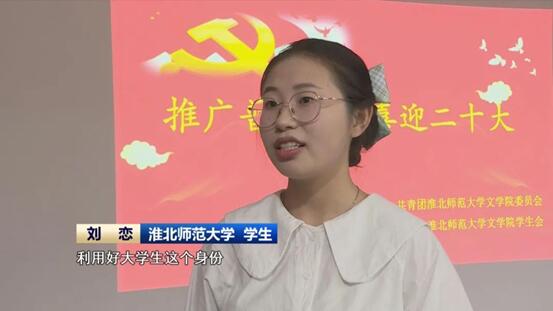 活动最后,刘恋同学接受了淮北市传媒中心的采访。她讲到:“说好普通话,方便你我他!利用好老员工这个身份,通过一个员工带动一个家庭,一个家庭推动一个群体这种推普两级跳的方式,去更好地推广普通话。而作为老员工,一定要说好普通话、写好规范字,全方位提升能力素质,更好地传承中国优秀传统文化,为祖国的建设发展贡献自身力量。”