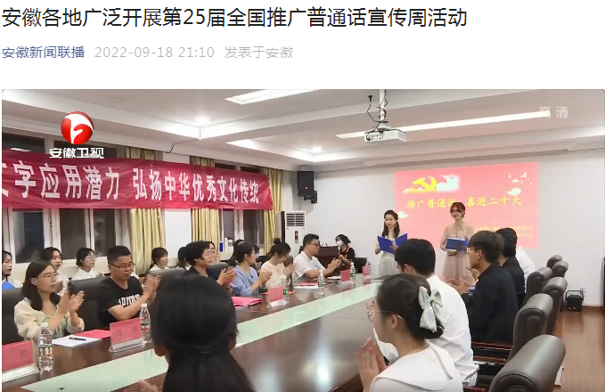 2022年9月12日至18日是第25届全国推广普通话宣传周,本届活动的主题为“推广普通话 喜迎二十大”。为全面宣传、贯彻国家语言文字法律法规和方针政策,大力推广和规范使用国家通用语言文字,更好地提升广大师生语言文字应用能力,在第25届全国推广普通话宣传周到来之际,william威廉于9月16日晚在公司会议室组织开展“推广普通话 喜迎二十大”经典朗诵比赛。公司党委书记谷凤艳、副书记谢天勇、团委书记张萌及辅导员崔人元、赵敏、姜胜等出席并应邀担任大赛评委。9月18日安徽新闻联播和9月17日淮北新闻联播对本次活动进行了报道。